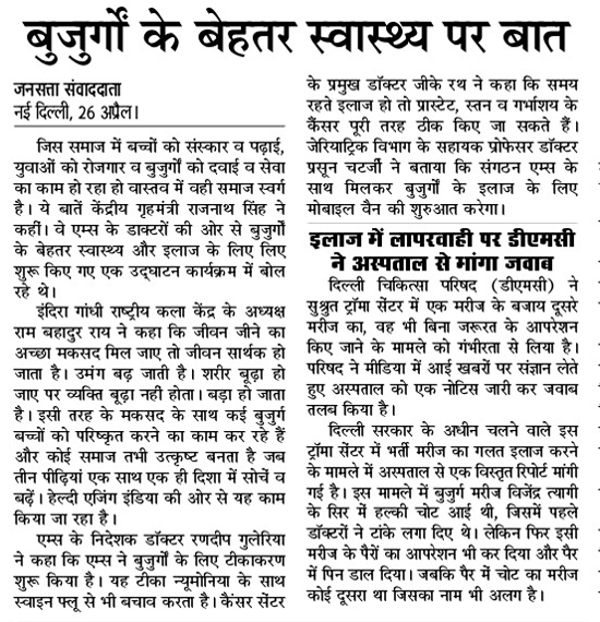 Healthy Aging India, ℅ Bharat Sevashram Sangh, Swami PravanandaMarg, Block G, Sri Niwaspuri, New Delhi – 110065